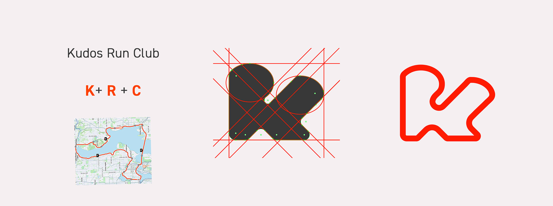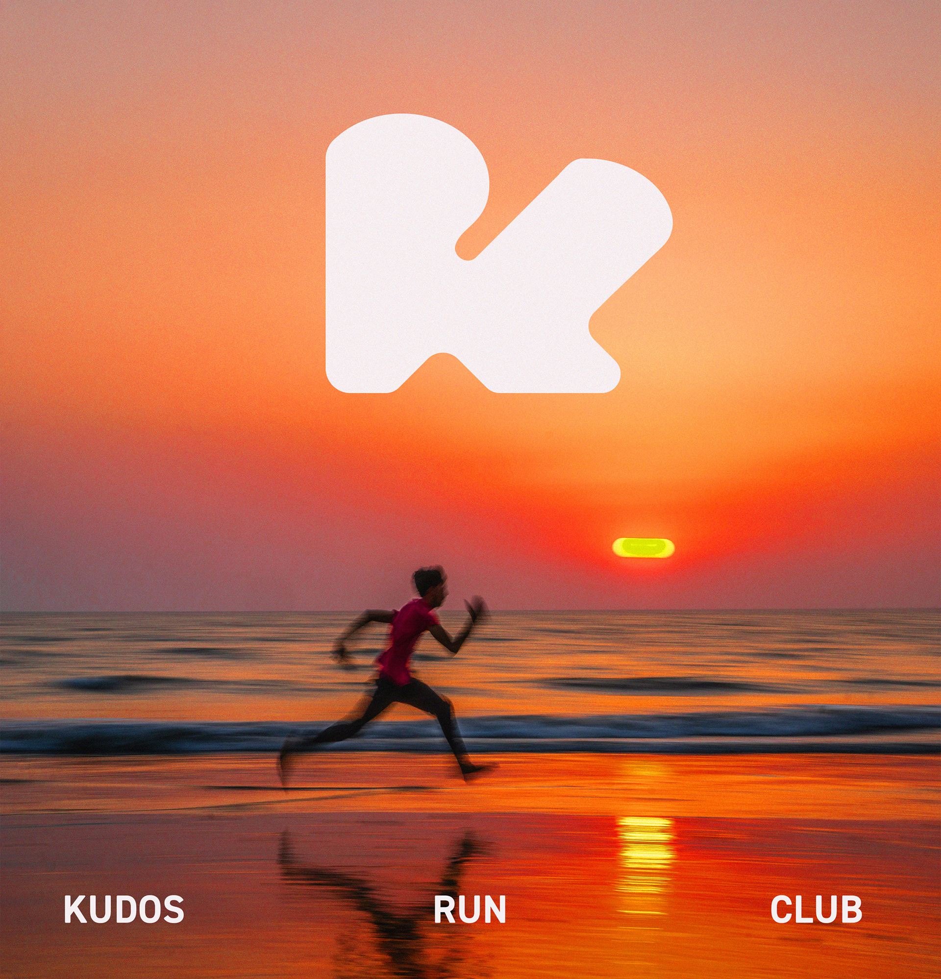 Kudos Running Club is a brand identity designed to reflect the sense of movement and community at the heart of Australia's running community. The logo, built from the letters K, R, and C, mirrors a fluid running route—bold, dynamic, and full of energy. Paired with a vibrant colour palette and straightforward typography, this identity champions the shared spirit of runners while staying visually striking and adaptable across applications.